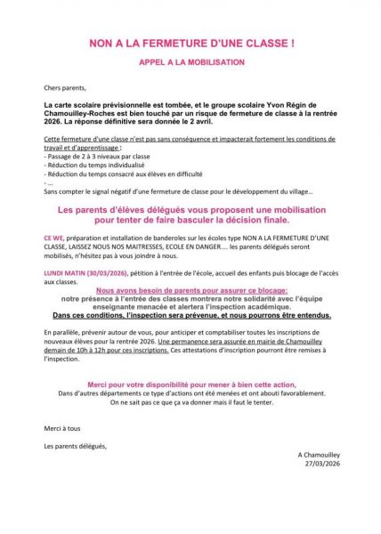 Un classe menacée de fermeture!